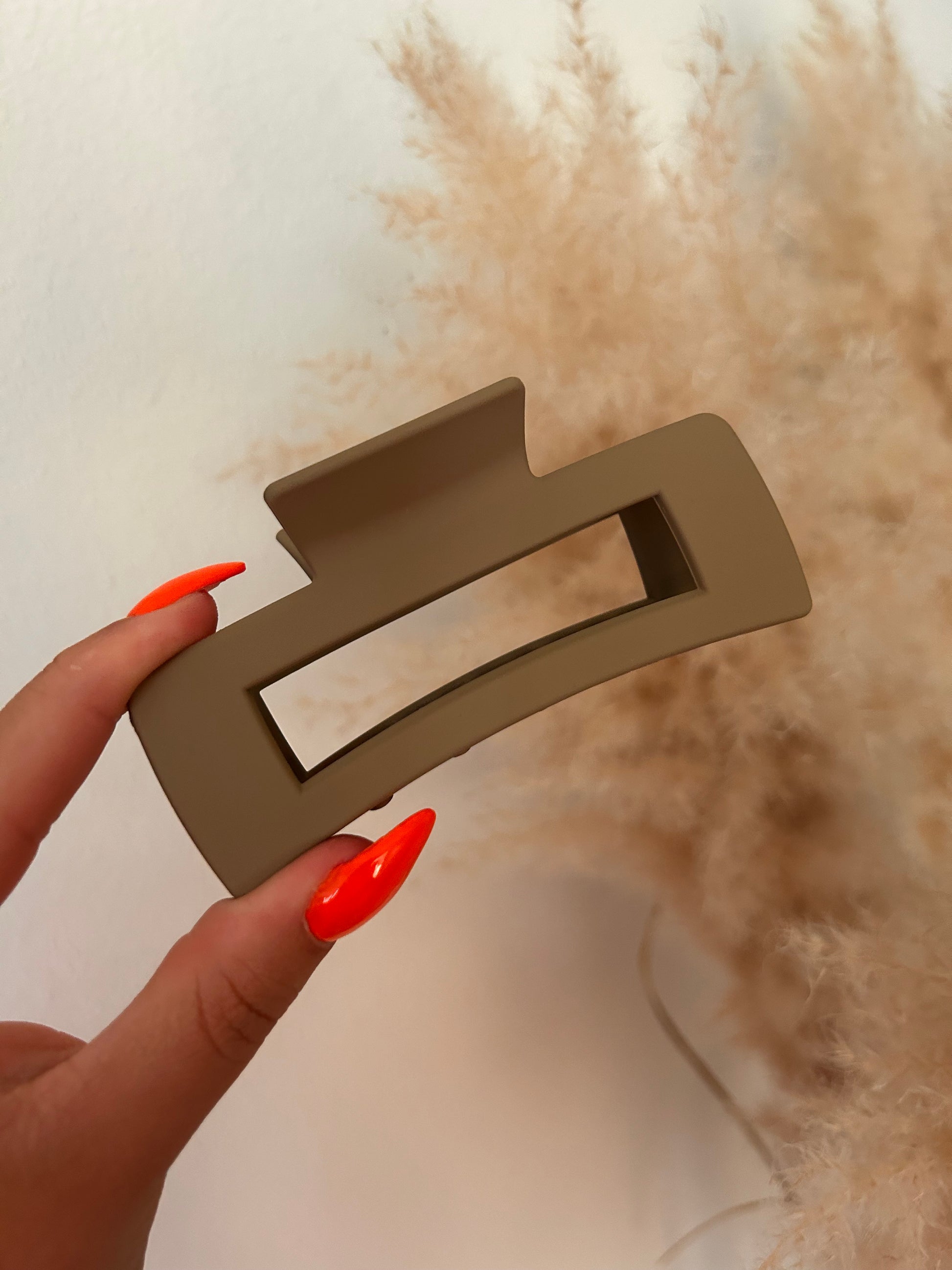 Back to basic! Wij zijn helemaal gek op deze basic haarklem met een rechthoekige vorm. Door de kaki kleur is hij gemakkelijk te combineren met je outfit en ben jij helemaal ready voor aankomend seizoen. Met deze haarklem kan je gemakkelijk een gedeelte of al jouw haren opsteken. Deze haarklem is geschikt voor elk haartype en lengte.