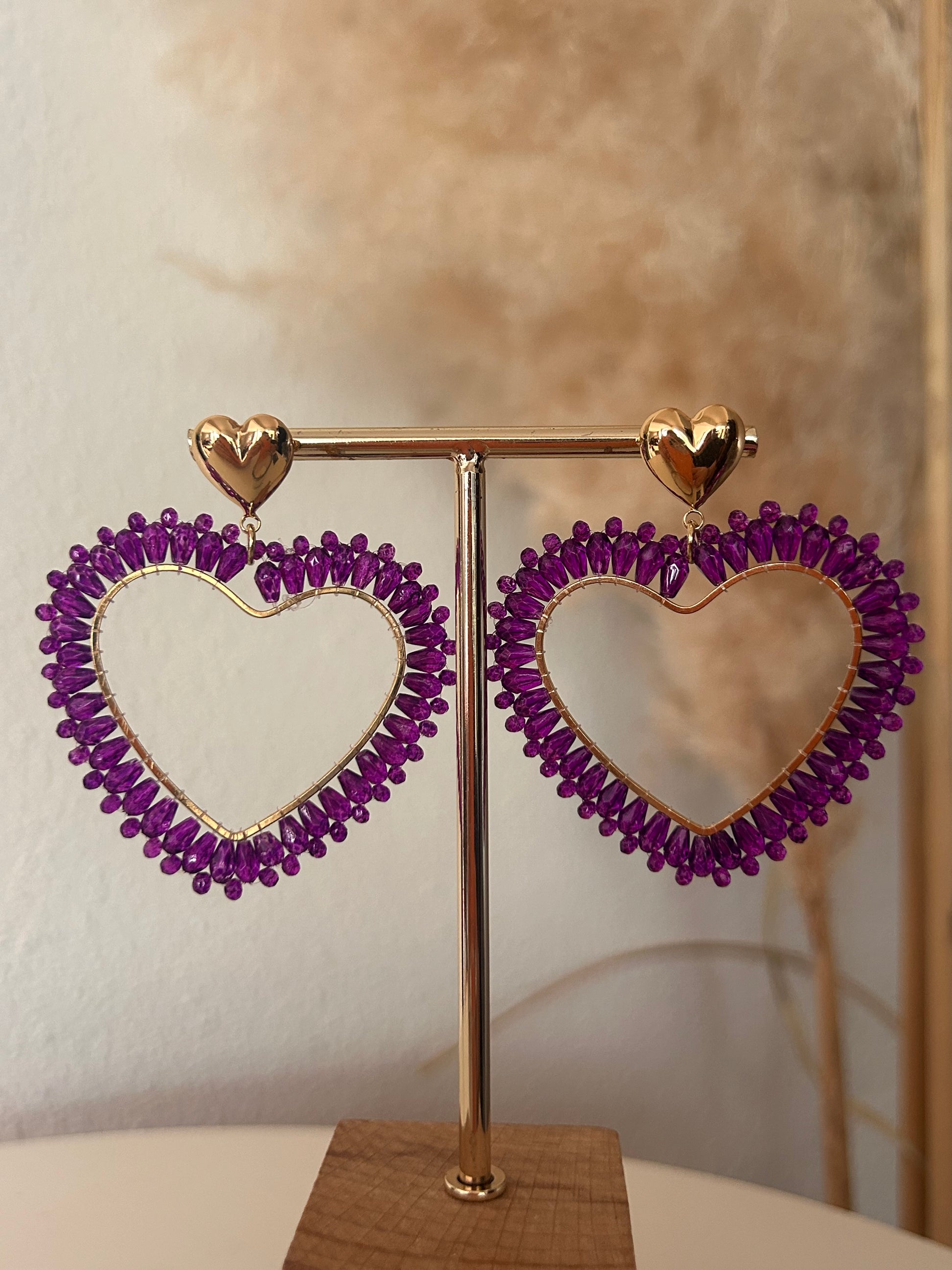 Zwarte oorbellen hart paars