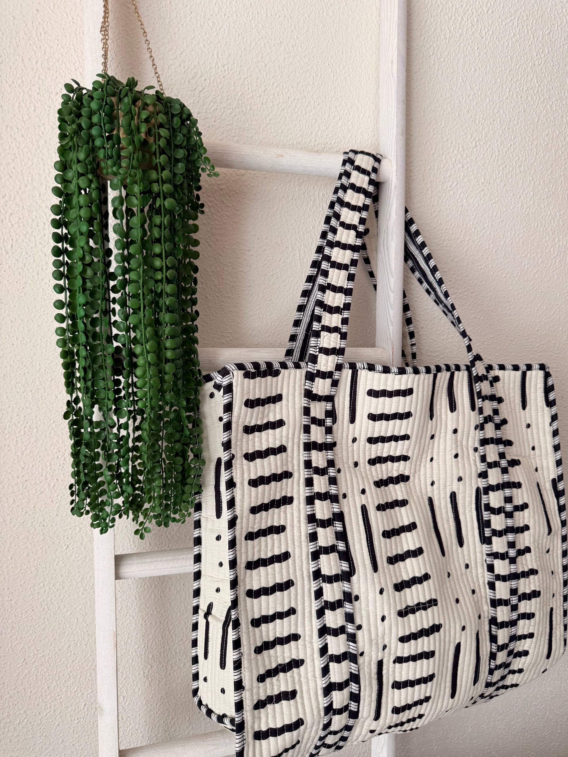 Breng kleur in je dag met deze space shopper! Gemaakt van 100% zacht katoen en versierd met een rustige print, is deze tas een echte eyecatcher. Dankzij het ruime formaat neem je moeiteloos als je dagelijkse essentials mee, van boodschappen tot strandspullen of een dagje uit.