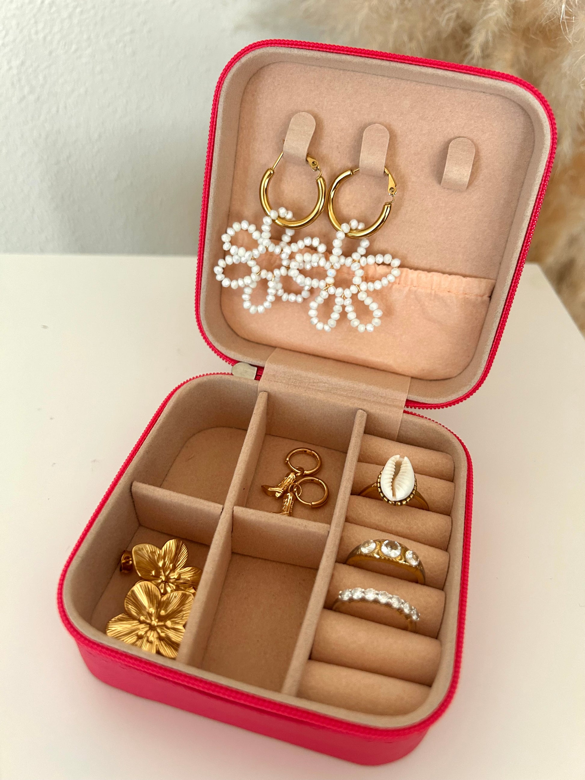 Wil jij het liefst jouw favoriete sieraden meenemen op reis? Dat kan nu gemakkelijk met onze sieraden doos! Nooit meer kettingen in de knoop en ringen die in een hoekje liggen. Deze accessoire kan niet ontbreken in jouw weekendtas of reiskoffer. Voor welke kleur ga jij?
