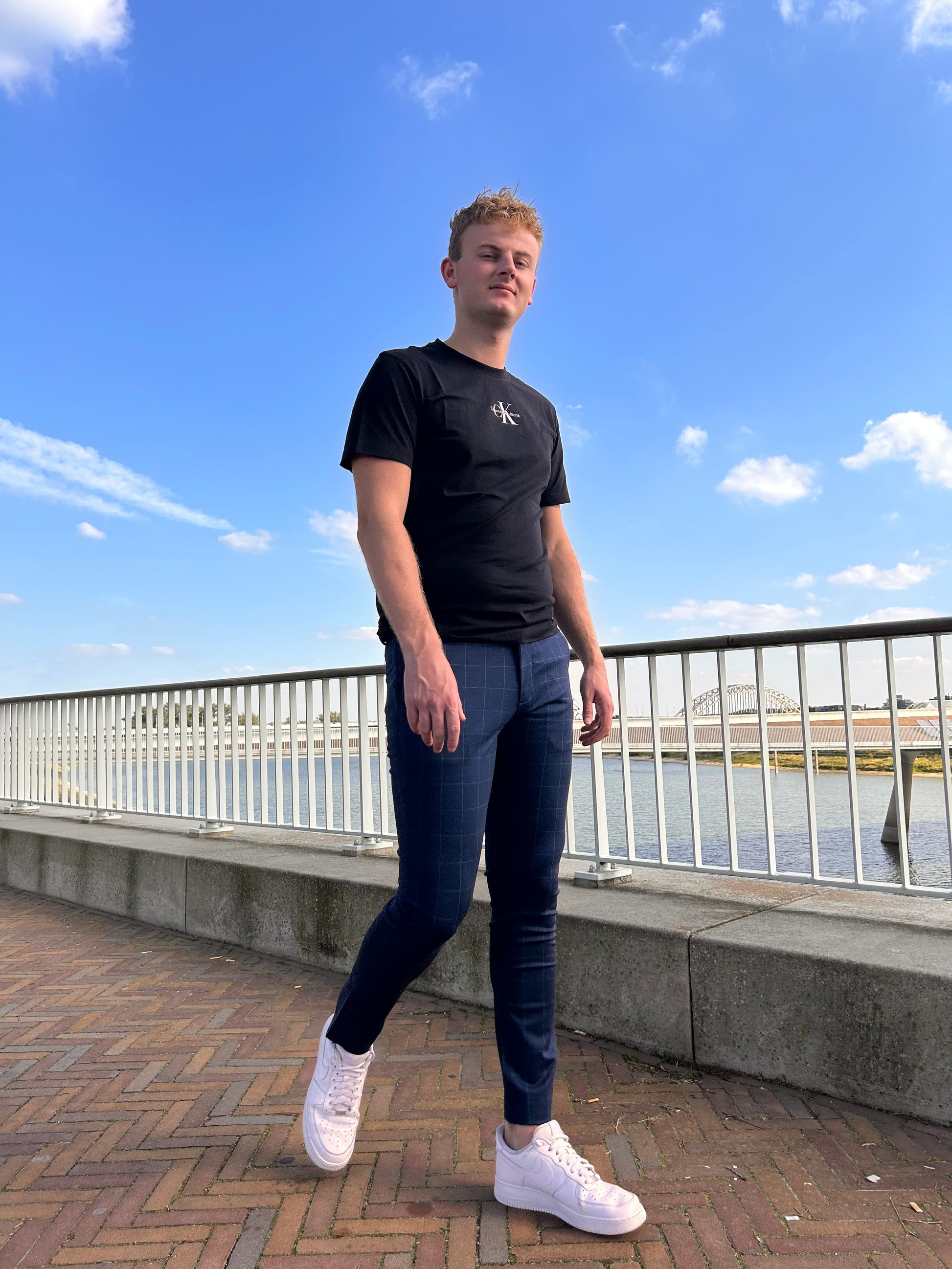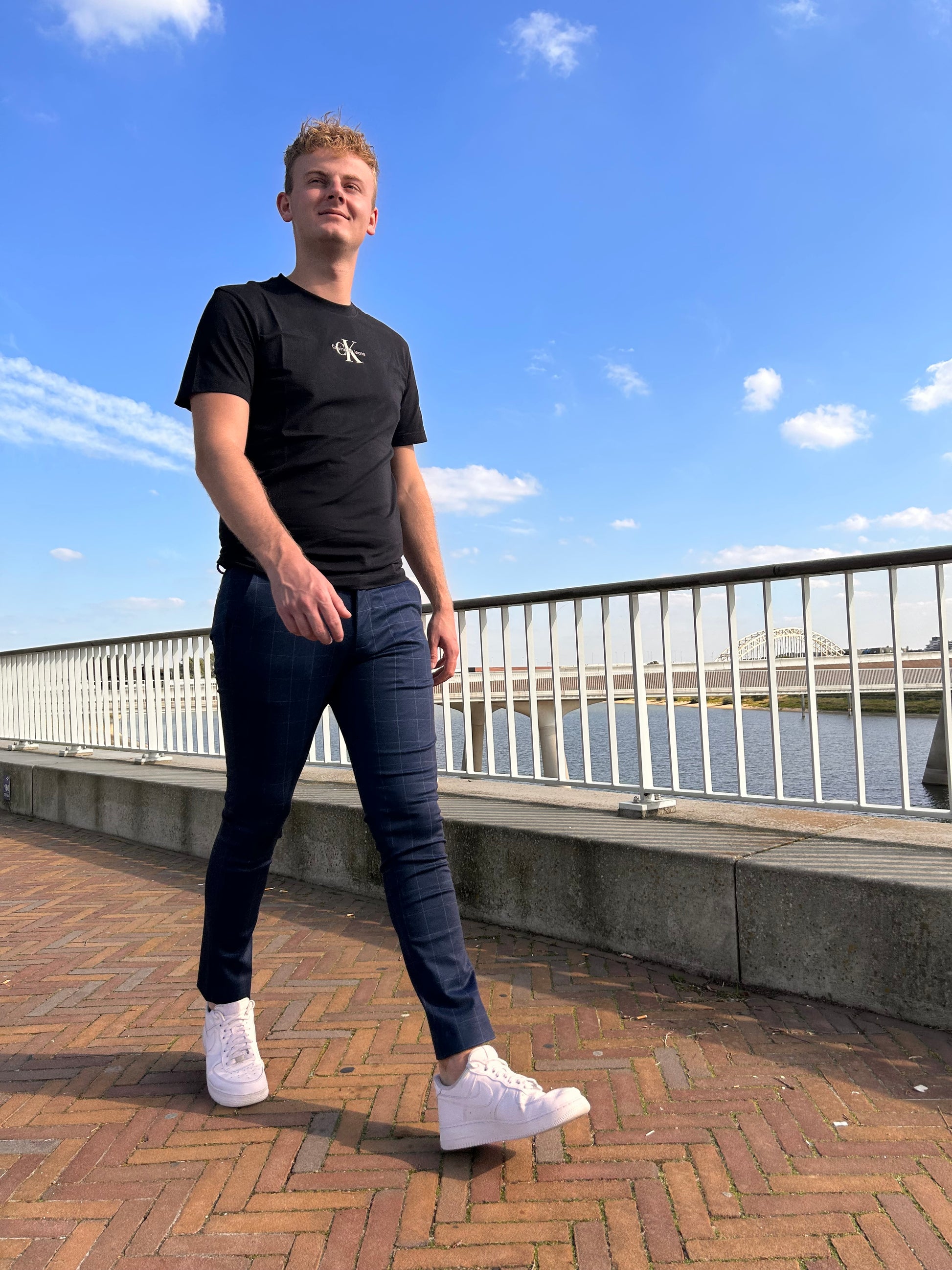 Met deze donkerblauwe chino van het merk Victorio & Lucchino maak jij jouw outfit een stuk netter. Combineer de chino met een t-shirt voor een casual look of combineer hem met een overhemd voor een chique uitstraling. De Chino heeft een knoopsluiting met rits en heeft zowel aan de voor als achterkant zakken.